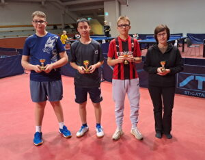 Rasmus Rannu voitti kaikki neljä otteluaan ja otti luokkavoiton. Hän menetti vain yhden erän. Ykkössijoitettu Vladlen Astaptsev tuli toiseksi kolmella voitolla. Jojo Erholtz (837) tuli kolmanneksi kahdella voitolla hänen voitettua Ntarlin Bempetsin (864) 3-2. Bempetsi johti erin 2-1, ja viides oli 12-10. Myös Hugo Salo voitti Bempetsin 3-2 ja viides erä oli 15-13. Näin Salo otti neljännen sijan, mutta hänen rating kilpailujen aikaan oli jo 921. Rannun rating kilpailujen jälkeen oli 1173.