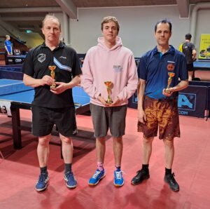 Tässäkin luokassa oli 10 pelaajaa, joten käytettiin kahta viiden pelaajan poolia. Osoittautui, että tämä oli aikataulullisesti huono juttu lauantain kello 13:n ryhmässä. Nimittäin toinen pooleista oli todella tasainen, joten jokainen ottelu oli kova taistelu. Kymmenestä ottelusta viisi oli viisieräinen, neljä oli neljäeräinen ja vain yksi meni 3-0. Niinpä pooli kesti yli neljä tuntia, vaikka lopussa pelattiin kahdella pöydällä. Jatkopelit pelattiin siten kello 17:n ryhmän aikana.
