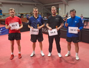 Kuvassa vasemmalta toiseksi sijoittunut Meelis Kärner (PT Espoo), luokkavoittaja Mika Räsänen (PT Espoo), kolmanneksi sijoittuneet Mika Rauvola (Smash) ja Marek Viskman (TIP-70). Kyllä Kärnerkin pokaalin sai!