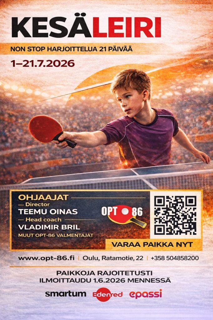OPT-86 järjestää neljättä kertaa non-stop kesäleirin Ratamotien pöytätennishallilla (Ratamotie 22, Oulu).