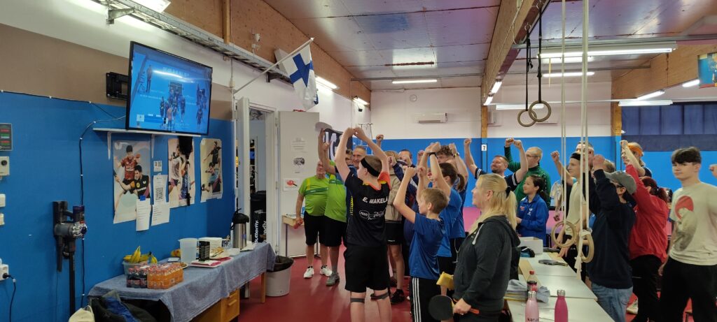 Aamupäivän luokkien jälkeen screenille laitettiin EM-joukkuekilpailujen ottelu Suomi – Belgia ja samaan aikaan kuuluteltiin käyntiin tasoitusnelinpelin kamppailut.
