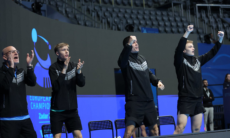 Suomen joukkue Zadarissa: Benedek Oláh, Alex Naumi, Aleksi Räsänen, Lassi Lehtola (puuttuu kuvasta), päävalmentaja Mattias Bergkvist