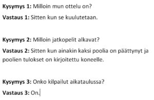 Ilmoittautua voi ilmoittautua kilpailuun edeltävään torstaihin asti tai siihen asti kun 40 ilmoittautunut aloitusryhmään. Toivottavasti ilmoittautumiset tehdään mahdollisimman pian.