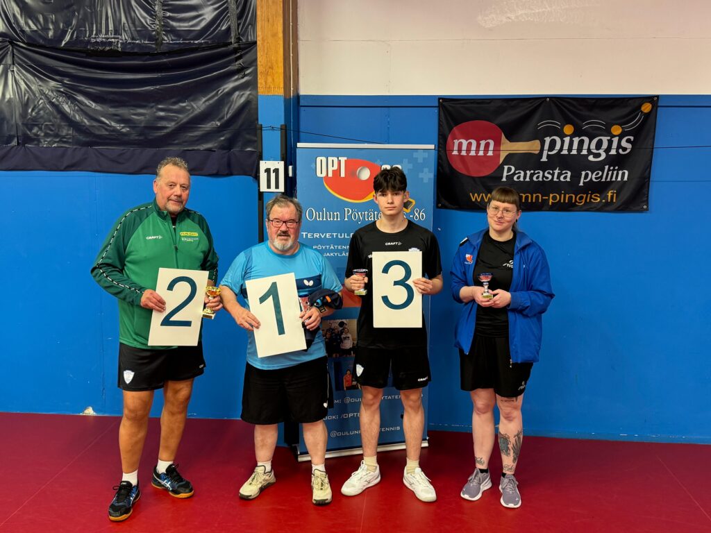 Welcome to Oulu on Saturday, November 22, 2025 to play in the one-day OPT-86 winter competitions. We will play all classes in four-player groups and we will play consolation in all classes. In the junior class, we can use larger pools if necessary.
