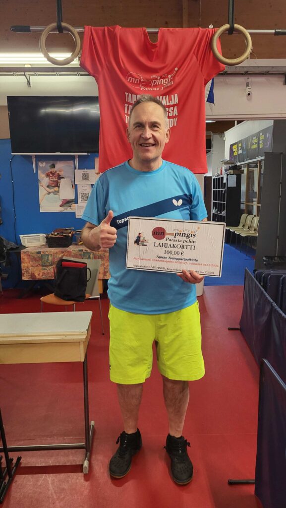 All class winners will receive a prize in the competitions. In addition, in the usual style, trophies or stands will be offered to the top four. In the team competition, we will reward the two best teams in each level group. In the handicap, the winner gets 50% and the runner-up gets 25% of the entire class’s entry money. In addition, Tapsa will choose a ”best fighter” from among the competition players who will receive a €100 gift card to MN-Pingis.