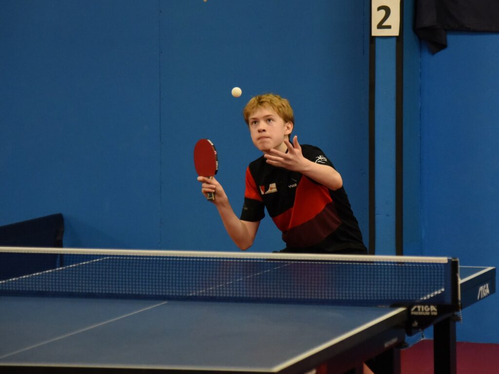 Toni pelasi aivan erinomaisesti ja niin pelasi myös Max. Pelissä nähtiin hurja määrä hyviä palloralleja. Toni eteni tiukassa ottelussa viidennessä erässä 10-8 johtoon ja syöttö oli omissa käsissä. Ensin hieman passiivinen palloralli ja toisessa huti puolittaisessa lyöntipaikassa. Max sai tilaisuuden jonka käytti hyväkseen. Maxin kaikki erävoitot ottelussa tulivat jatkopalloilta. Hienosti nuori mies piti päänsä tiukoissa paikoissa. Finaali oli tunnelmaltaan hyvä, kannustusta riitti hyvin puolin ja toisin ja hallilla oli mukavasti vielä porukkaa.