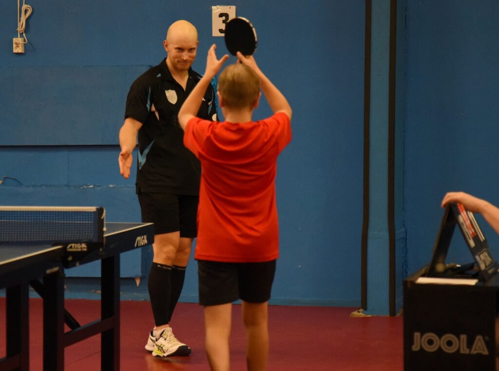 Seuran hallitus myös panosti kilpailujen ennakkosuunnitteluun tavallista enemmän ja se mielestämme näkyi kisapaikalla. Teimme käytännössä kaiken voitavamme että kilpailut olisivat pelaajille mahdollisimman hyvät. Hallin kapasiteetti paukkui ylärajallaan etenkin lauantaina kun pelattiin hallin täydeltä poolipelejä. Kaksinpeleissä 15 poolia pyöritettiin läpi kahdellatoista pöydällä sekä B- että C-luokissa. Hallin ilmastointia lisättiin nosto-ovea rajoittamalla. Seuran käytössä on hallilla mm. reaaliaikaiset ilmanlaadun mittarit ja saimme näillä tarkoilla toimenpiteillä pidettyä ilmanlaadun riittävänä. Myös yöaikaan huolehdimme etäohjauksin hallin ilman lämmittämisestä ja kuivattamisesta. Kilpailun aikana ei nähty ”liukkaita kumeja”.