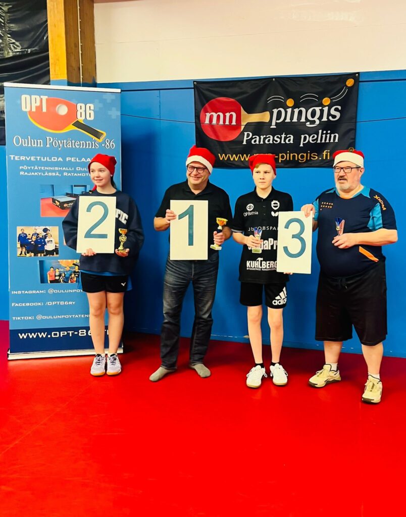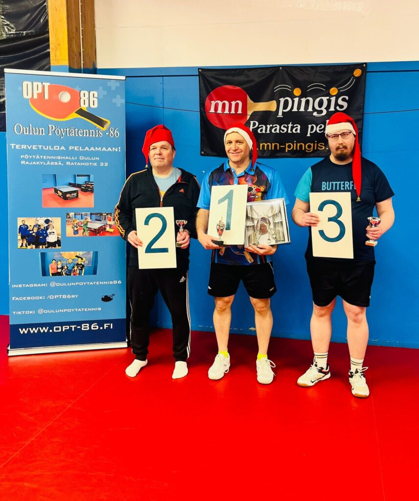 Tervetuloa Ouluun Ratamotien pöytätennishallille pelaamaan OPT-86 Joulukilpailuihin lauantaina 20.12.2025. Siirrä jo nyt Joulusiivouksesi sunnuntaille ja tule hakemaan iloista Joulutunnelmaa hyvässä porukassa pingiksen parista. Kilpailun järjestelytoimikunta loihtii hallille jouluista tunnelmaa.