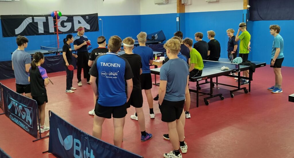 Aamun ensimmäisessä harjoituksessa vanhemmat juniorit keskittyivät perustason jalkatyöskentelyyn ja lyhytpeliharjoituksiin Matiaksen johdolla. Vladi vastasi pallolaatikkoharjoituksista ja Zhendai toimi sparraajana. Nappulaleiriläiset puolestaan tutustuivat kämmenlyöntien ihmeelliseen maailmaan.