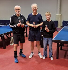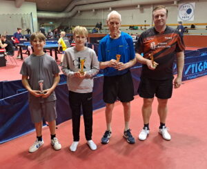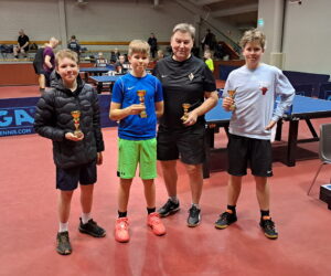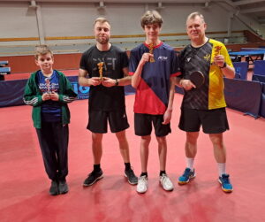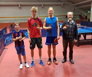 Tässä vaiheessa pelattiin poikien nelinpelin loppuottelu. Hai Nguyen ja Eetu Mäkelä osoittivat erittäin hyvää yhteispeliä olemalla selvästi Jimi Koivumäkeä ja Niko Hämäläistä parempia. Erät pelissä 3-1 ja numerot varsin selkeästi. Nelinpelissä ”oikea-vasen” on aina valttia ja voittajat käyttivät sitä hyvin hyödykseen.